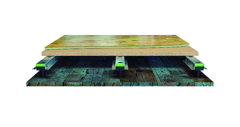 Para reducir el ruido de impacto y el ruido aéreo eficazmente en esta vivienda de la parte vieja donostiarra se utilizó el sistema Granab, método patentado de suelo técnico de acero que incorpora elementos amortiguadores.