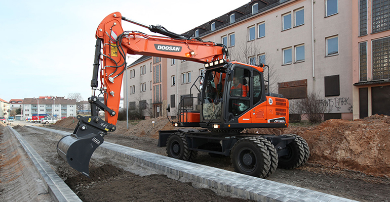 La nueva excavadora de ruedas DX190W-5 de 19 toneladas Fase IV de Doosan Bobcat EMEA combina comodidad y facilidad de control con nuevas características que aumentan la eficiencia energética, el tiempo de actividad y el retorno de la inversión, con especial atención al aumento de potencia, robustez y agilidad.