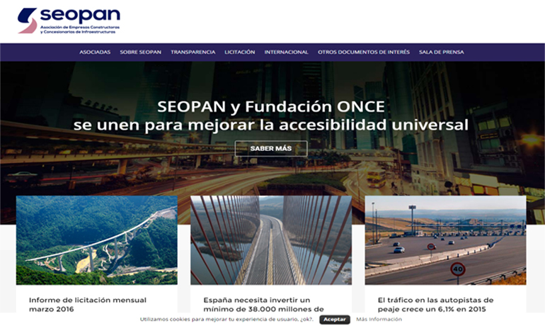 La Asociación de Empresas Constructoras y Concesionarias de Infraestructuras, Seopan, ha estrenado nueva página web con el objetivo de ofrecer una plataforma más dinámica y con mejoras en la estructura de contenidos, funcionalidad y experiencia de usuario. Además, la nueva web integra las redes sociales de la asociación, Linkedin y Twitter, y permite el acceso a través de los dispositivos móviles y tabletas.