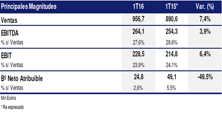 El Grupo OHL ha cerrado el primer trimestre de 2016 con un buen comportamiento a nivel operativo. Las ventas han experimentado un crecimiento del 7,4% hasta los 956,7 millones de euros. Por su parte, el Ebitda ha experimentado un avance del 3,9% hasta los 264,1 millones de euros, mientras que el beneficio neto atribuible retrocede un 49,5% hasta los 24,8 millones de euros.