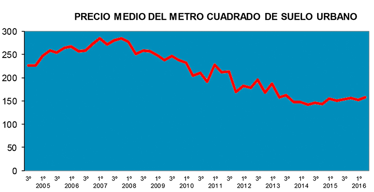 El precio medio del metro cuadrado del suelo se situó en 157,7 euros. Frente al trimestre anterior, el precio medio del m2 experimentó un ascenso del 3,9%. En los municipios de más de 50.000 habitantes el precio medio del m2 aumentó en tasa interanual un 1,4% tras situarse en 308,5 euros por metro cuadrado.