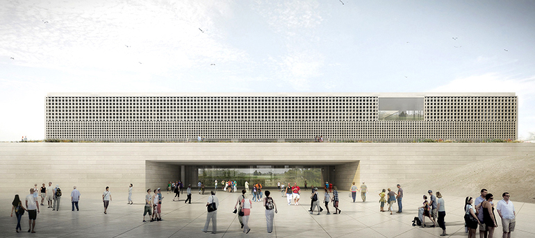 El edificio, cuya arquitectura exterior se basa en un diseño con reminiscencias de un pasado prehispánico, se integrará armoniosamente en el entorno cultural y medioambiental. Se levantará en un área de más de 75,000 m² ubicada en la zona arqueológica de Pachacámac, en el distrito de Lurín, en el km 31 de la antigua Panamericana Sur.