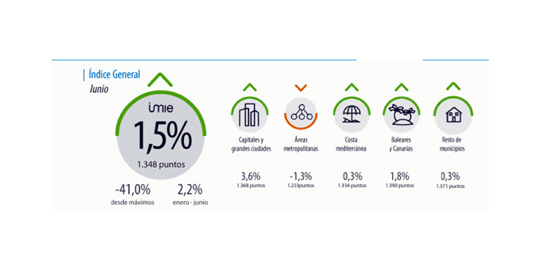 Las agrupaciones ‘Capitales’ y ‘Grandes ciudades’ son las que presentan en el último informe mensual los mejores datos respecto a los datos del mismo mes del 2015, ya que cuentan con un crecimiento del 3,6% respecto al año anterior, se mantienen los precios en la ‘Costa Mediterránea’ y en la agrupación ‘resto de municipios’ con un leve repunte de un 0,3% respecto al ejercicio anterior. En el otro lado encontramos la ‘Costa Mediterranea’ donde se ha producido un descenso en cercano de 1,3% respecto al dato de junio de 2015.