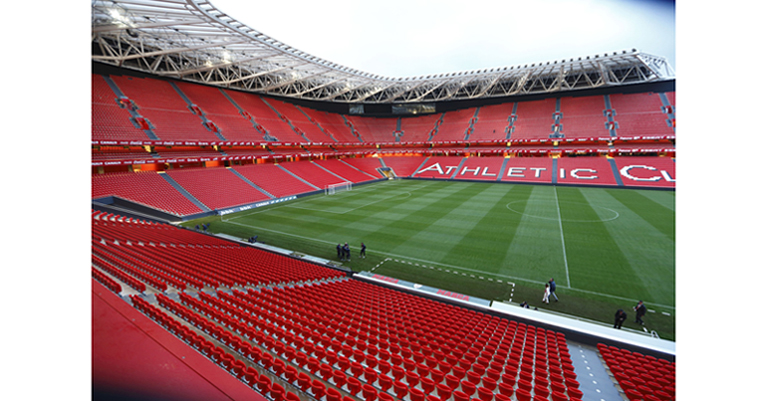 El nuevo estadio del Athletic Club de Bilbao cuenta con 15.000 m2 de panel rígido de lana de vidrio Isover de alta densidad, revestido por la cara exterior con una lámina de aluminio reforzada con papel kraft y malla de vidrio, que actúa como barrera de vapor, y por su cara interior, con un tejido Neto de vidrio reforzado de color negro de gran resistencia mecánica.