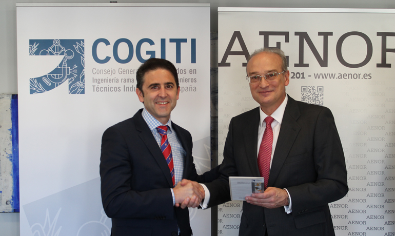 AENOR, Asociación Española de Normalización y Certificación, ha entregado al Consejo General de Colegios de Graduados en Ingeniería de la rama industrial e Ingenieros Técnicos Industriales de España, COGITI, un DVD recopilatorio de Reglamentos Técnicos y sus normas UNE asociadas, de interés para este colectivo profesional.