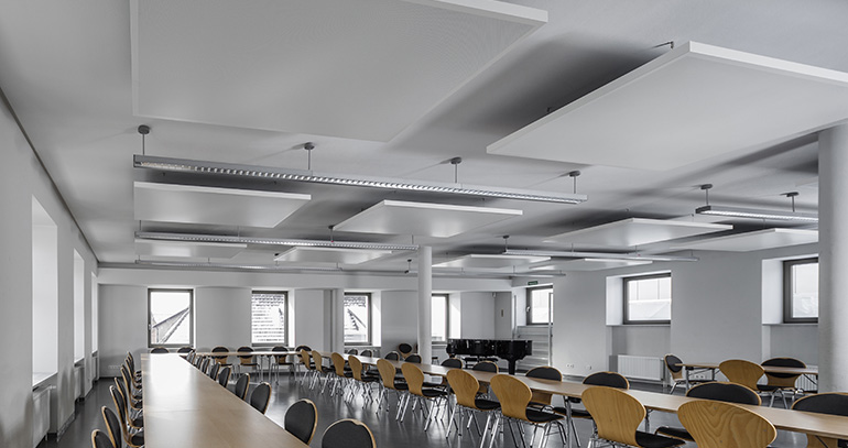 Los nuevos Easy Canopys metálicos de Armstrong, con micro-perforación Rd 1522, están pensados para mejorar la acústica en espacios con altas exigencias de absorción del sonido, como pueden ser las oficinas de plenum abierto o las aulas y los vestíbulos de centros escolares y establecimientos hoteleros, y así maximizar la concentración y la inteligibilidad de los usuarios.