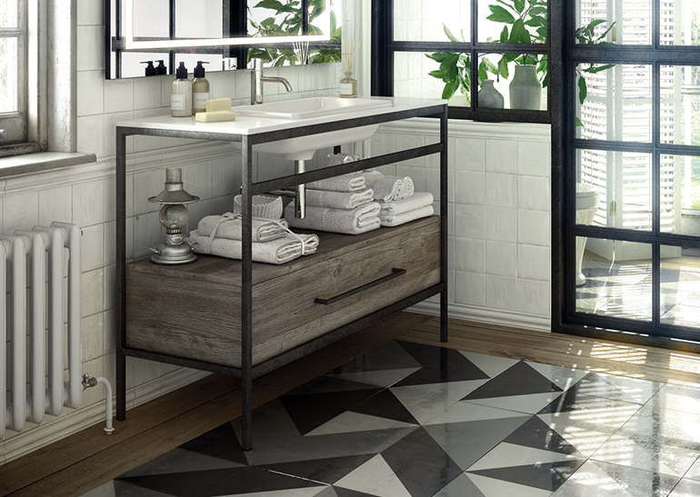 Las estructuras de metal de Unibaño para muebles de baño se fabrican en sistemas tubulares soldados y pintados en blanco, negro o con posibilidad de personalizar el color. Esta estructura se puede utilizar como base de encimeras integradas en diferentes materiales, como porcelana, mineralmarmo, cristal, etc., y/o combinados con diferentes piezas de muebles en madera o laminados.
