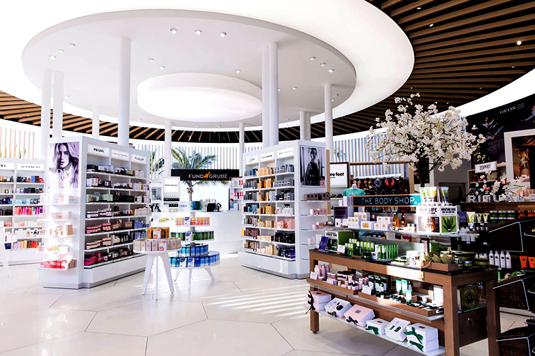 La empresa Ainsis ha instalado en la tienda Fund Grube de Gran Canaria dos techos circulares en forma de anillo y una lámpara central de gran tamaño, consiguiendo una sensación de armonía y de gran espacio.